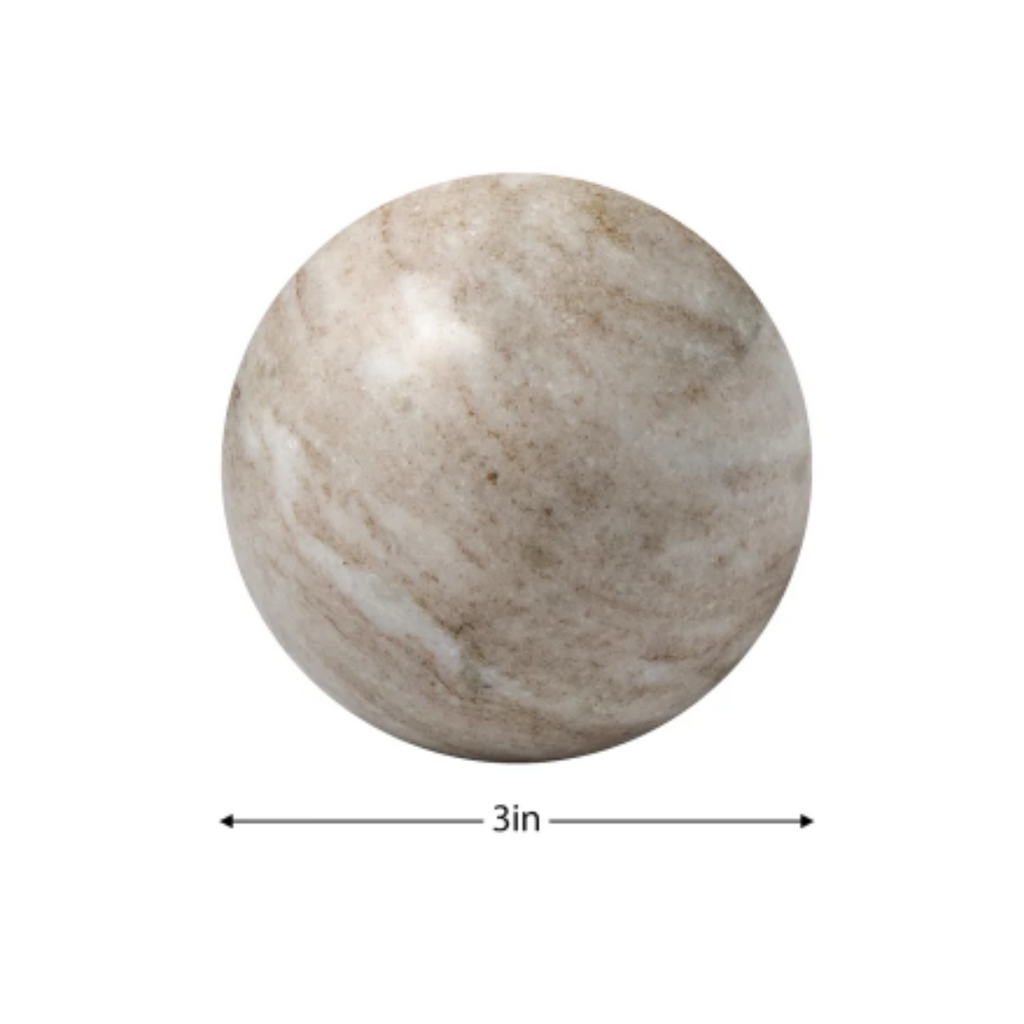 Elevate your decor with the minimalist elegance of this 2.75-inch round marble ball. Its smooth surface and natural stone veining create a sophisticated accent for shelves, desks, or coffee tables. Perfect alone or grouped with other decorative objects, it adds timeless style to any space.