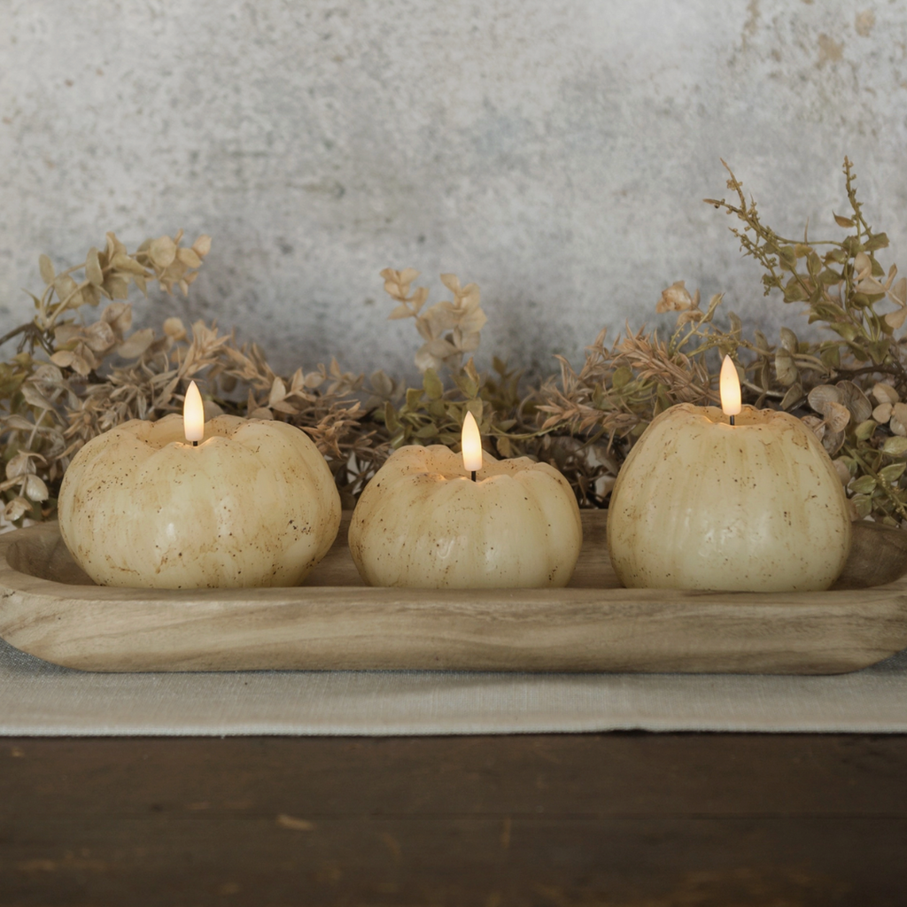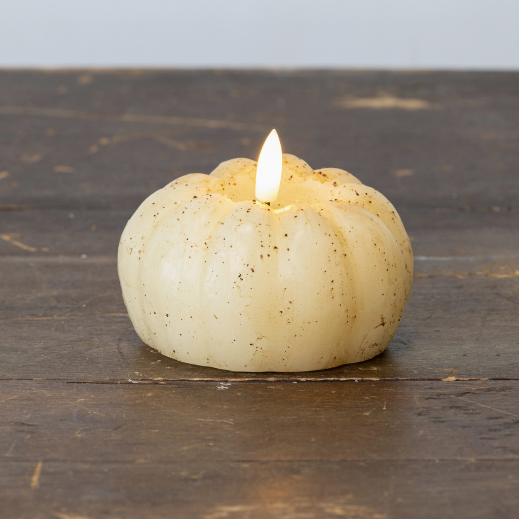 3" Cream 3D Flame Short Pumpkin Candle