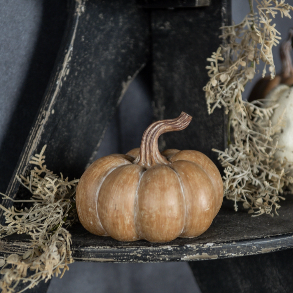 Add a touch of warmth to your space with our 4.75" Tan Resin Pumpkin from Ragon House. This decorative tabletop object, with a depth of 5.75", showcases our dedication to providing high-quality and unique home decor. Ideal for any room, this resin pumpkin caters to a variety of styles and preferences.