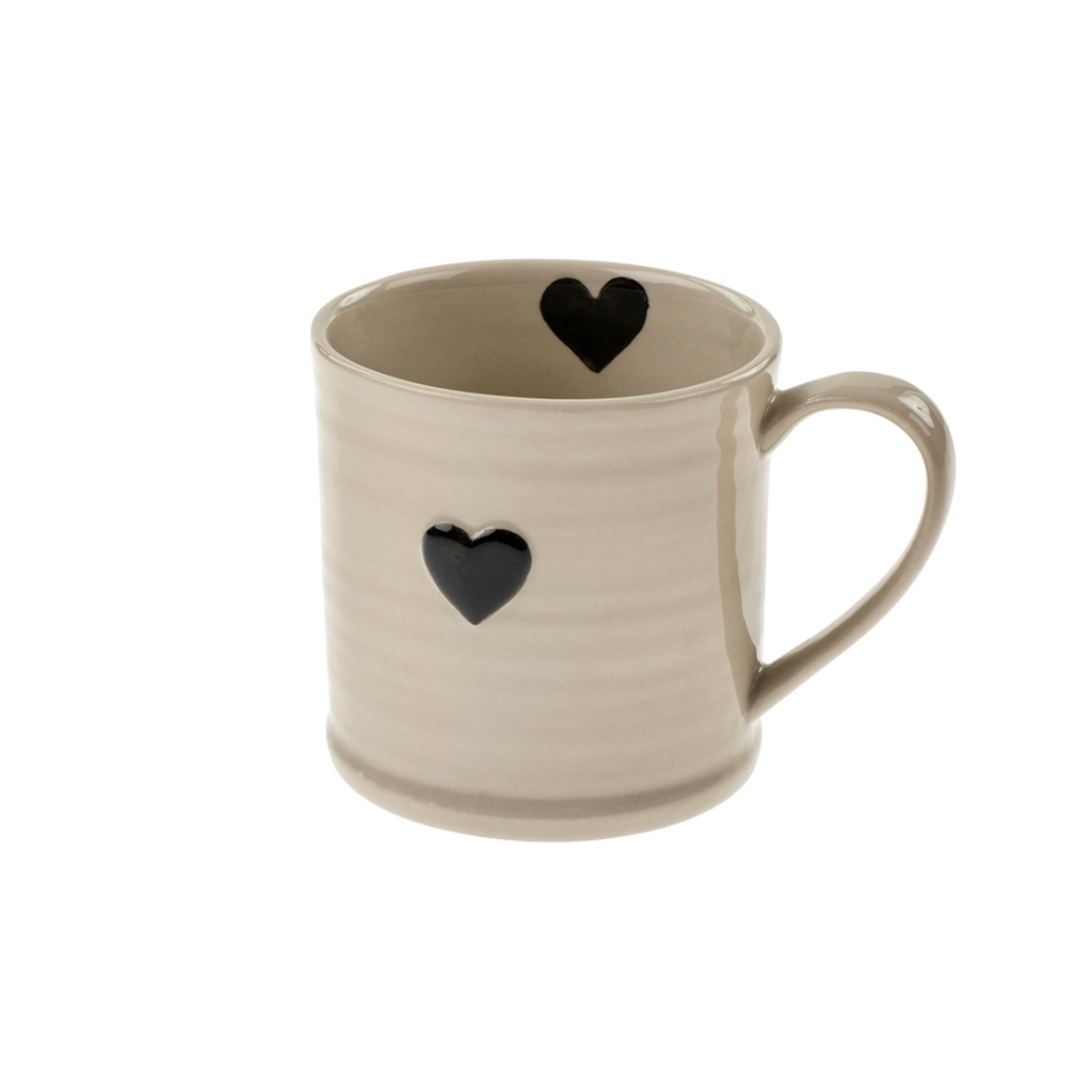 Handcrafted with care, this mug features a smooth, durable finish and a stylish black heart detail, blending timeless design with everyday functionality.