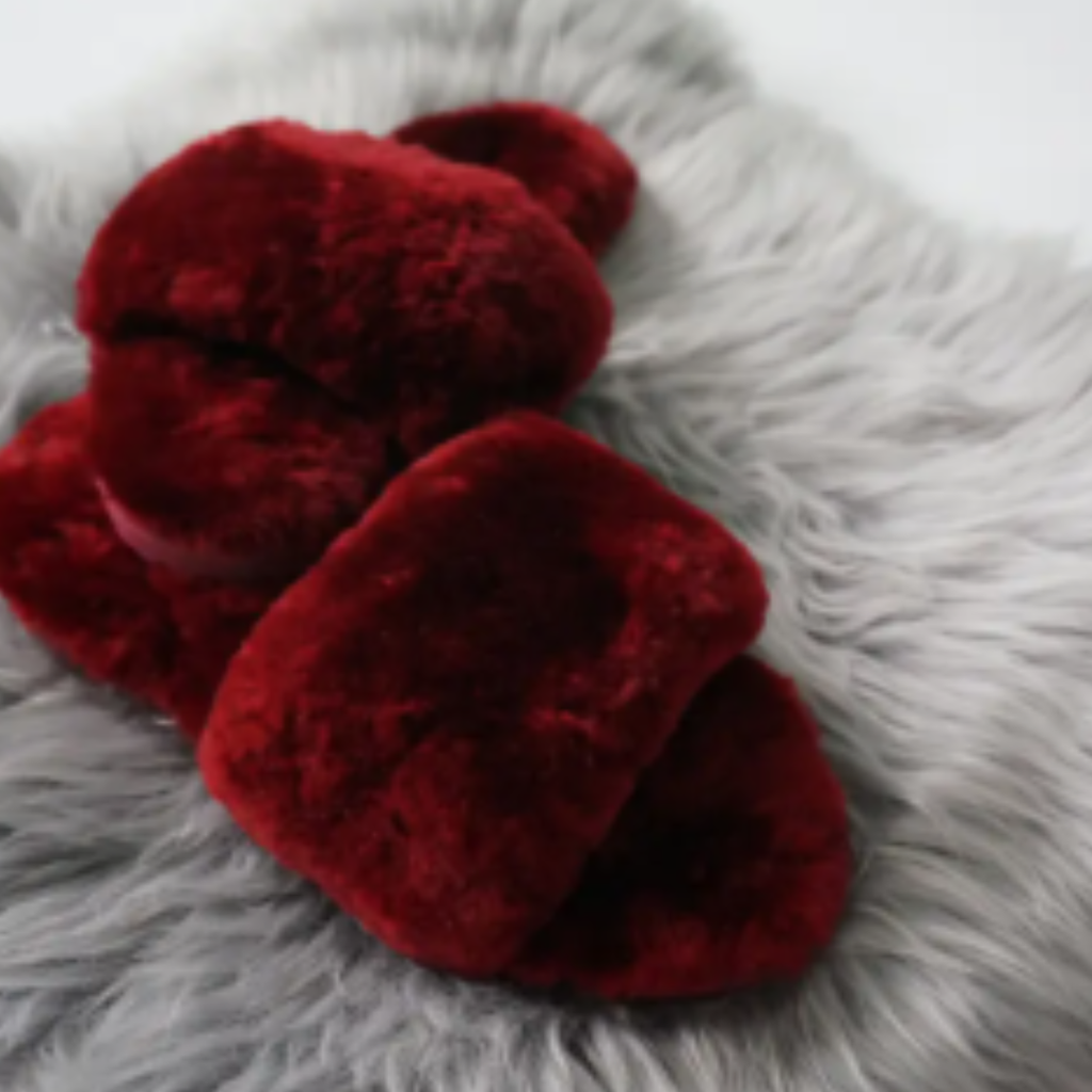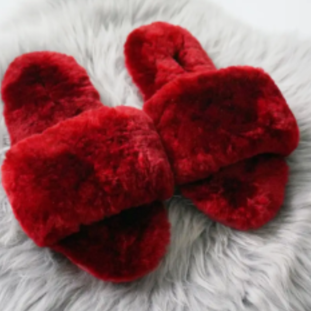 Australian Sheepskin Fluffy Slipper - Burgundy