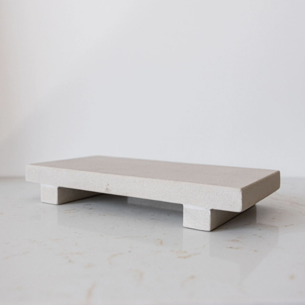 The Beige Sandstone Trivet Riser is made from high-quality sandstone, providing both visual appeal and functionality for your kitchen. Its durable material guarantees lasting durability, and its sleek design is a perfect match for any kitchen style. This versatile piece can also enhance living areas and bathrooms. This item may feature slight variations in pattern and texture, adding to its unique and elegant appearance.