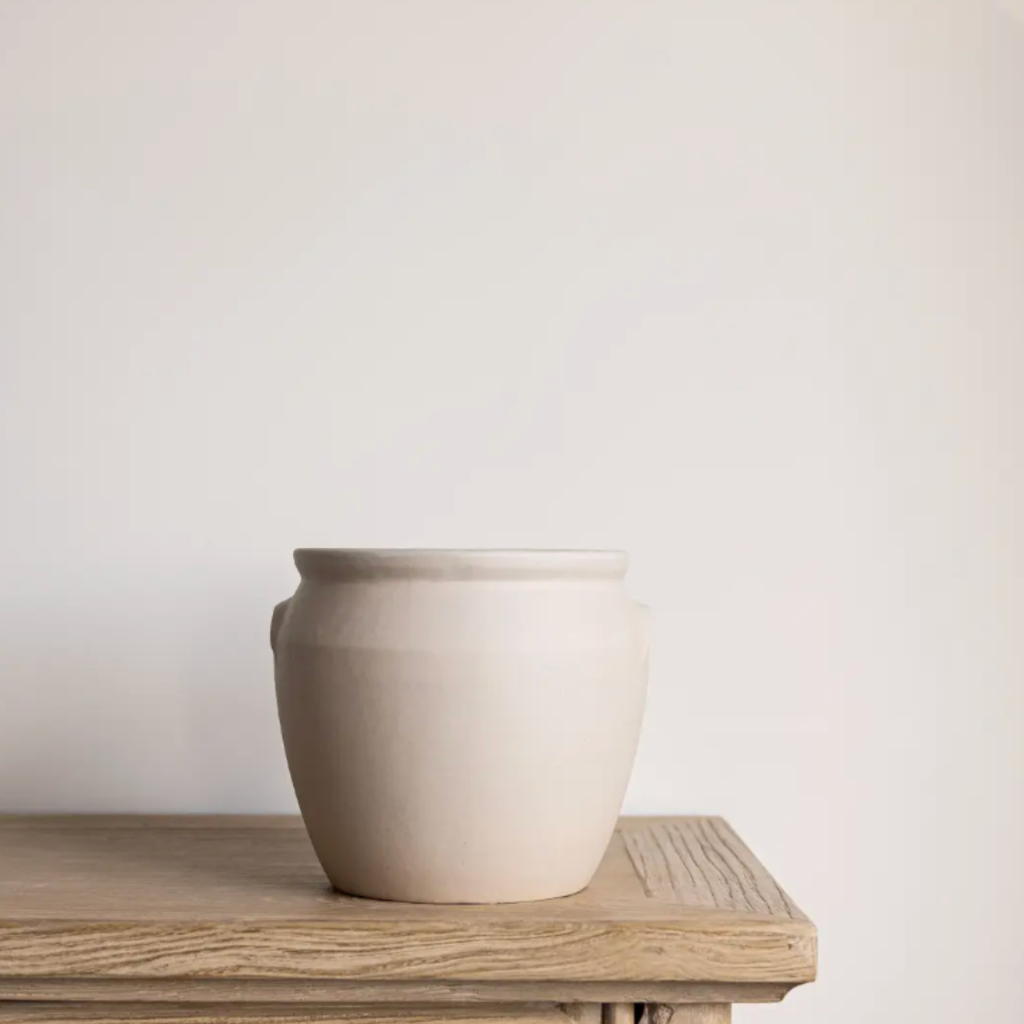 French Replica White Matte Confit Crock Pot Large is a vintage inspired vase, made from terracotta. It is ideal for bringing a touch of originality to your home decor, whether placed on shelves, coffee tables, dining tables, or in bedrooms. The soft, black colour of these vases allows for versatile styling options. They can be paired with dried flowers for a decorative touch, or displayed on their own for a simple yet elegant look.