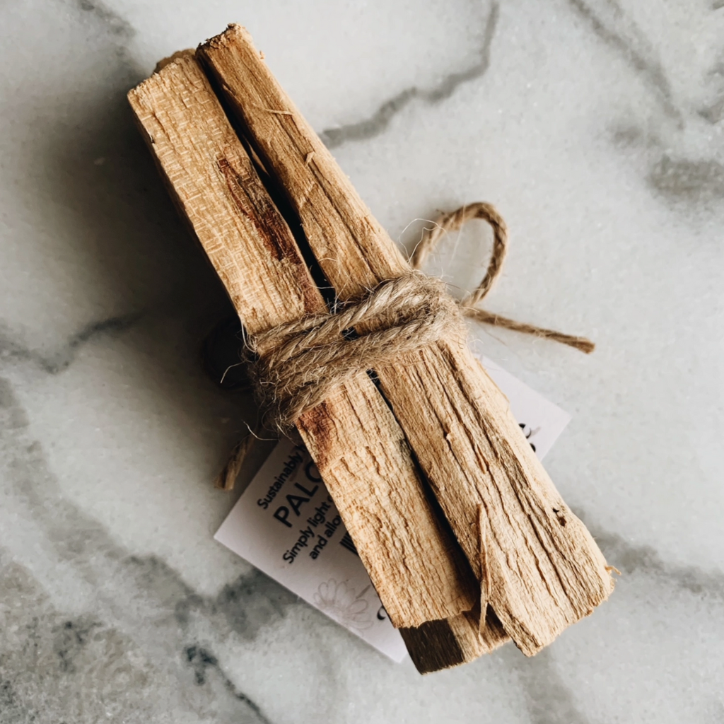 Palo Santo is a sustainably cultivated wood from South America that has natural aromatic properties from the tree resin. This “Holy Wood” is believed to ward off bad energy, aid in healing, calm and cleanse the body and mind, and bring good fortune to those that burn it. To burn, simply light the end of a stick and keep the flame burning for about a minute. Blow out the flame and blow gently to keep the embers smoking. The stick will emit the beautiful fragranced smoke.