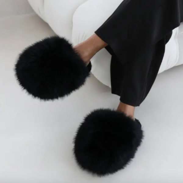 Extreme Oversized Faux Fur Fluffy Slippers- Black