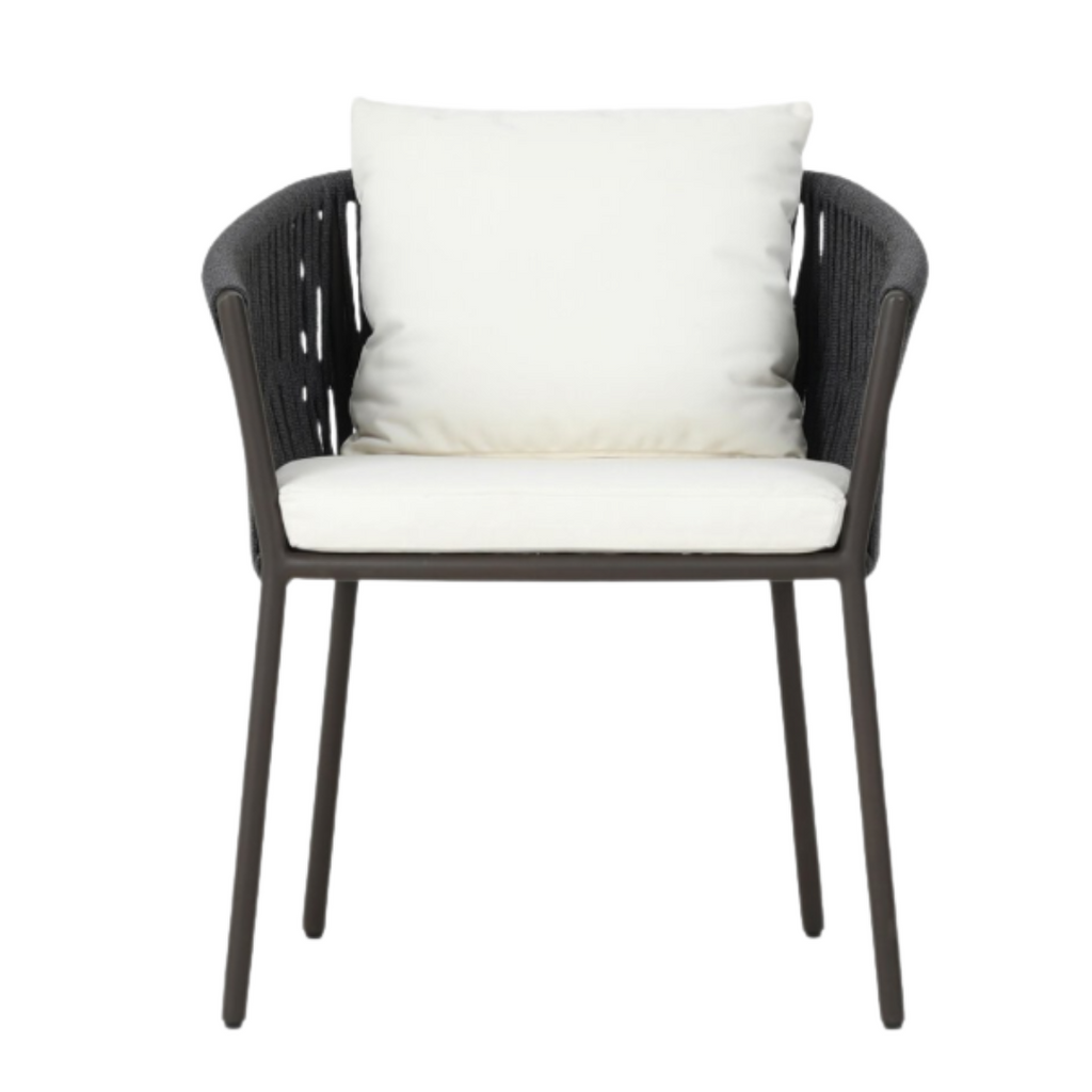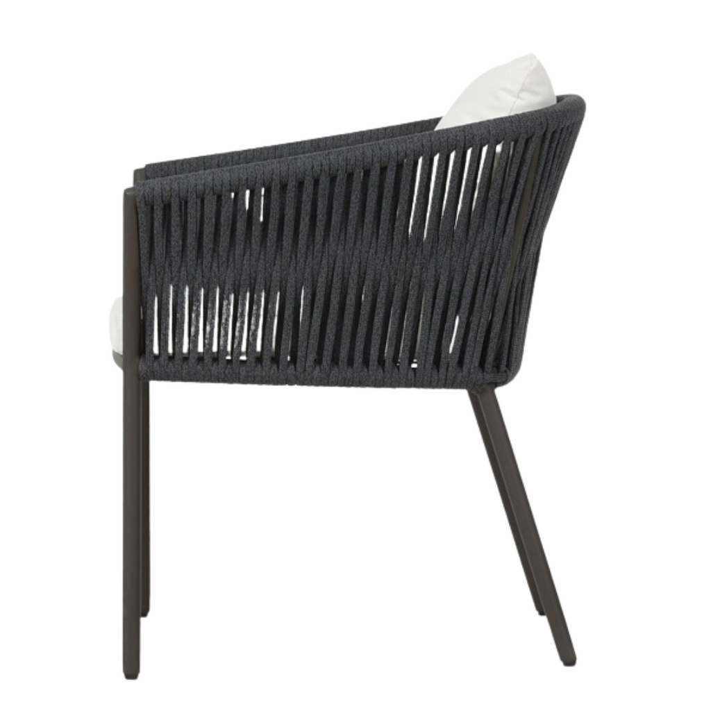The perfect place for outdoor daydreaming. A beautiful rope-based design is woven across a durable aluminum frame in a rich bronze finish. Topped with a wide cushion and throw pillows, all upholstered in 100% olefin, known for its UV-resistant, water-repellent and quick-drying abilities
