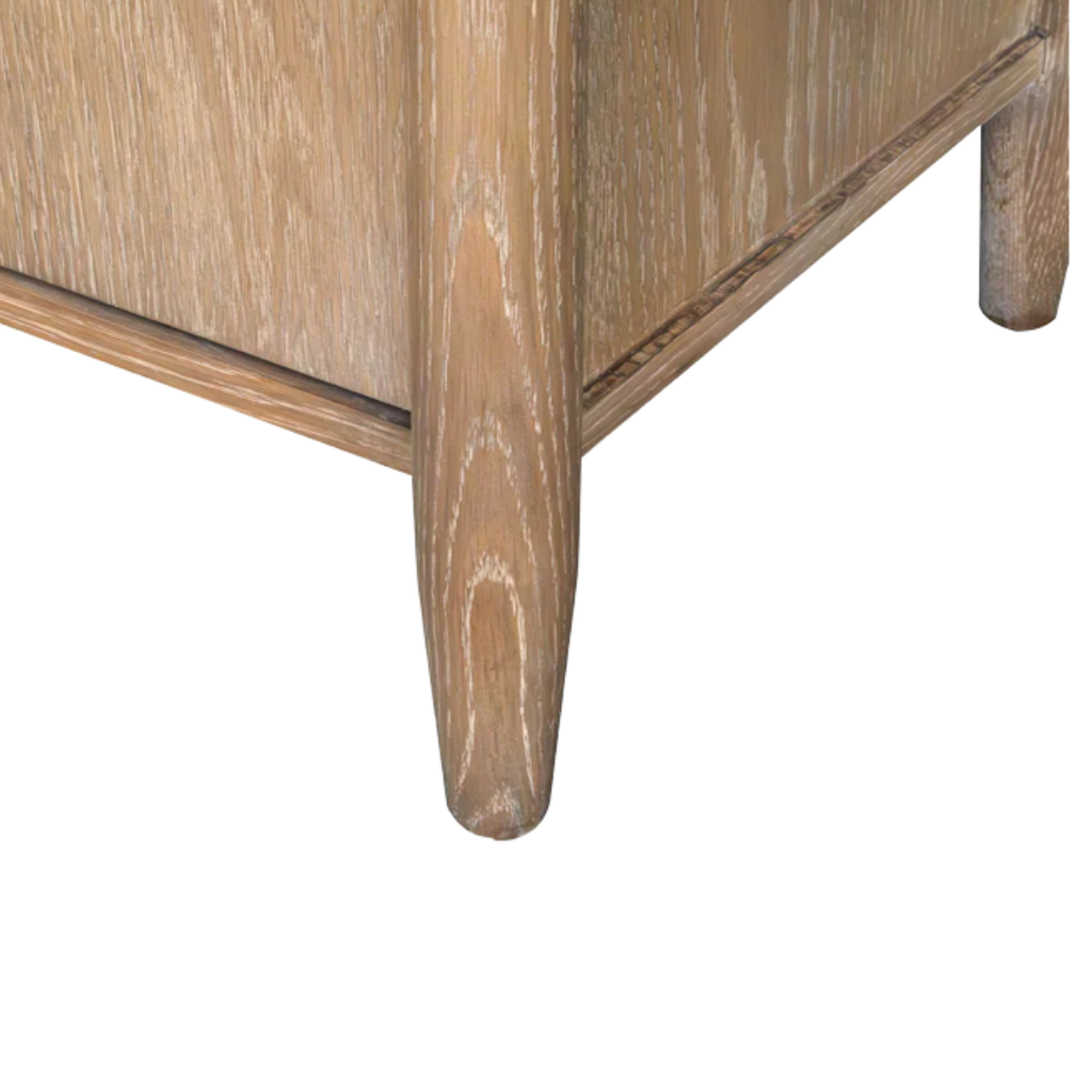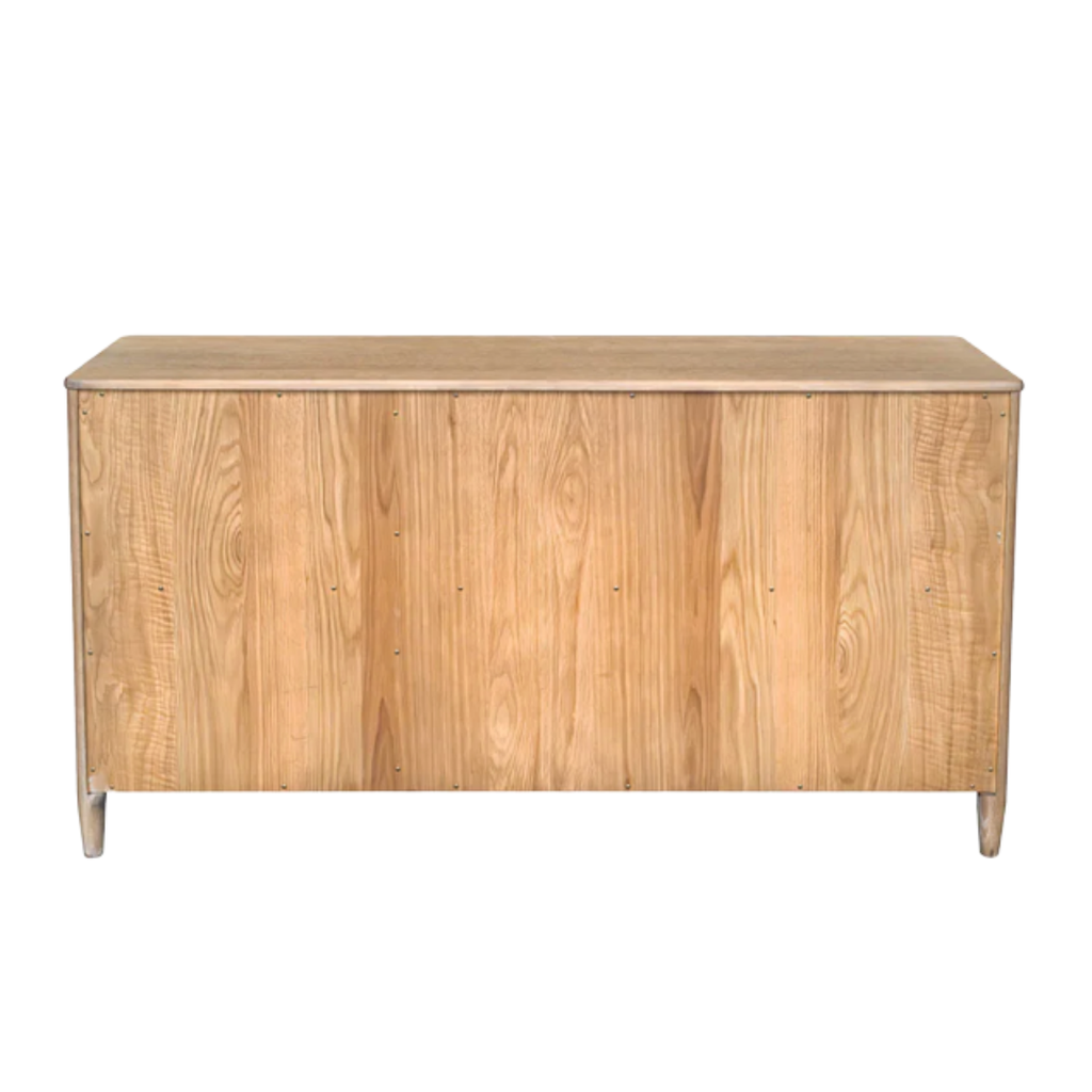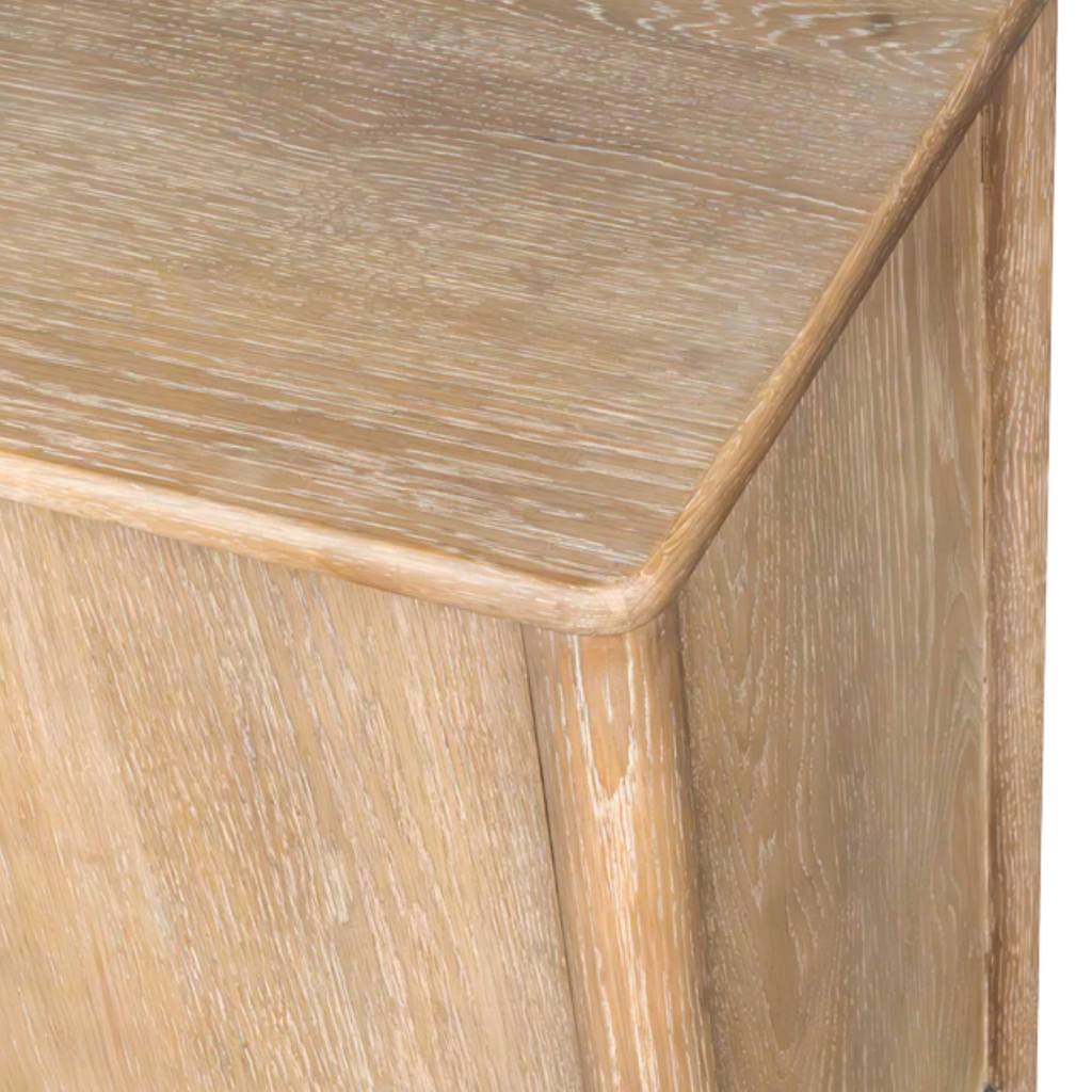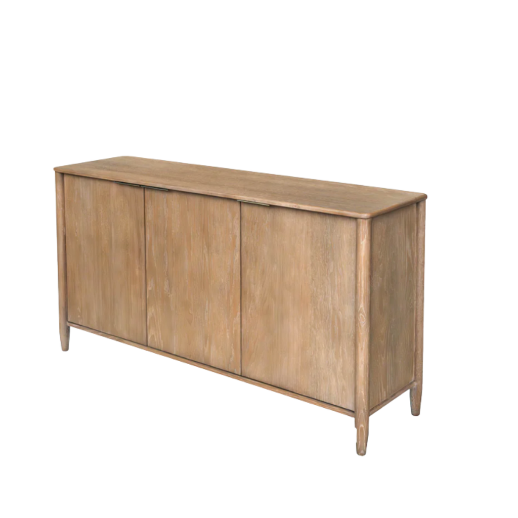 Subtle curves and hidden hardware define this clean-lined sideboard. Crafted for everyday function with a soft oak tone.
