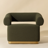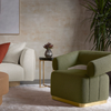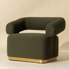 The Aggie Swivel Lounge chair is a statement-making mid-century accent chair with curves in all the right places. Upholstered in copenhagen olive fabric with a brushed gold stainless steel base, this lounge chair is a beautiful spectacle with its harmonious mix of textures.