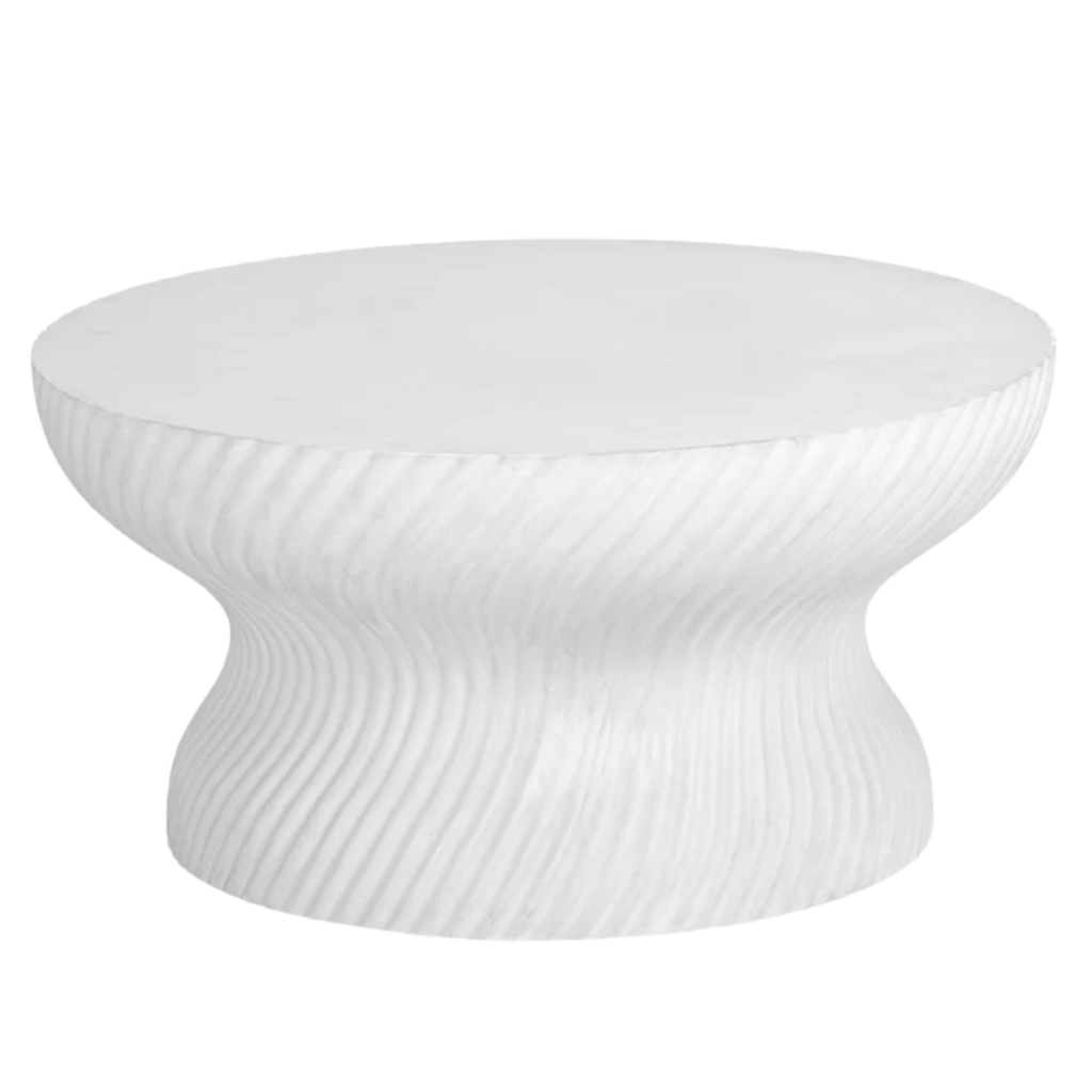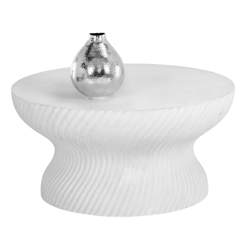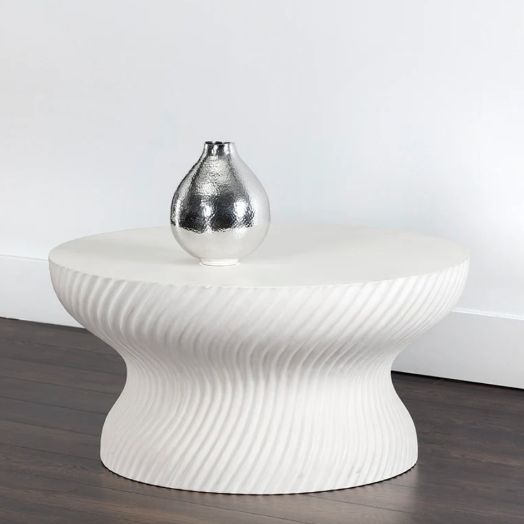 With a mesmerizing shape, this round coffee table is well defined by its stunning swirl indentation on the base.