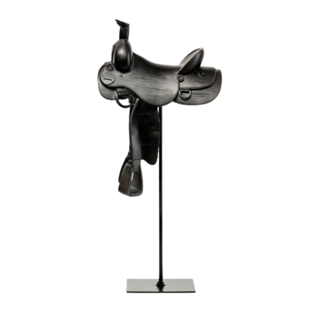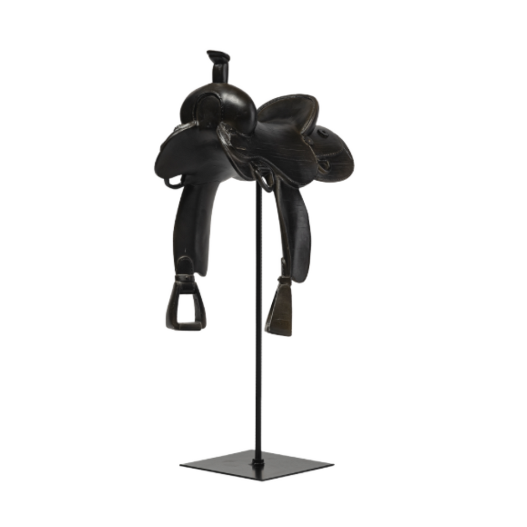 The Colt, an equestrian saddle inspired decor piece crafted from resin and metal, is a beautiful and unique addition to your space.