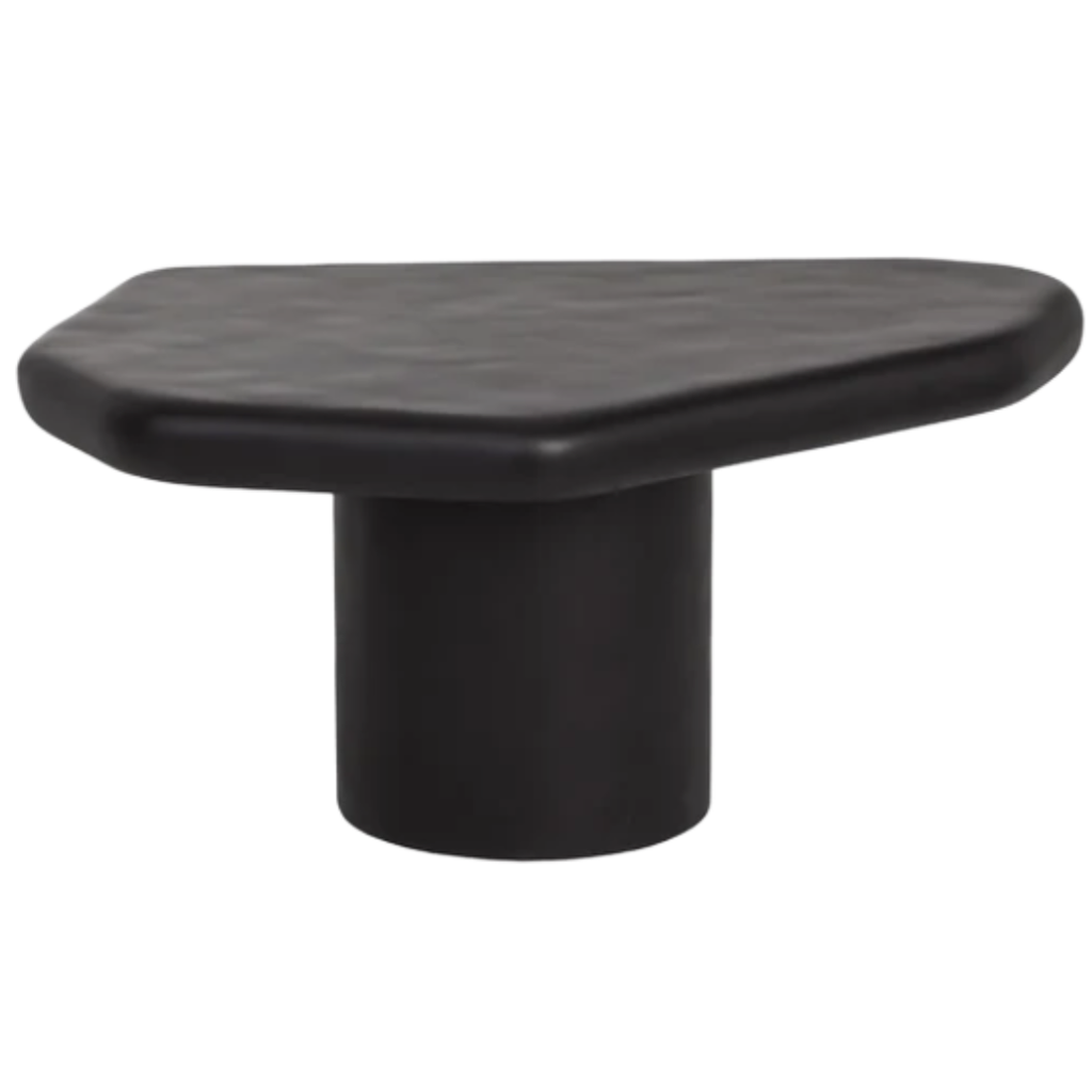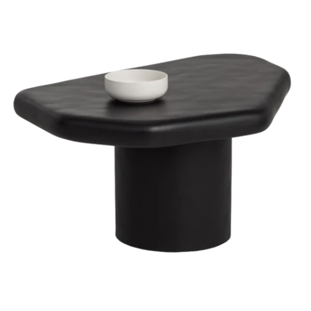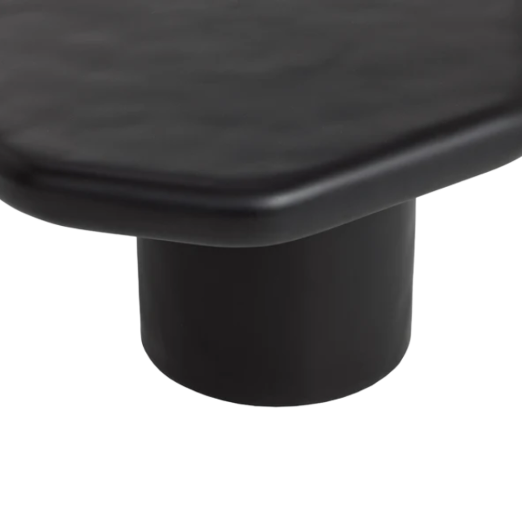 Crafted from matte black concrete, the Detti Coffee Table stands out with its sculptural silhouette. The rounded cylinder base supports a softly contoured top, shaped with organic asymmetry that adds depth and character to any indoor or outdoor setting.