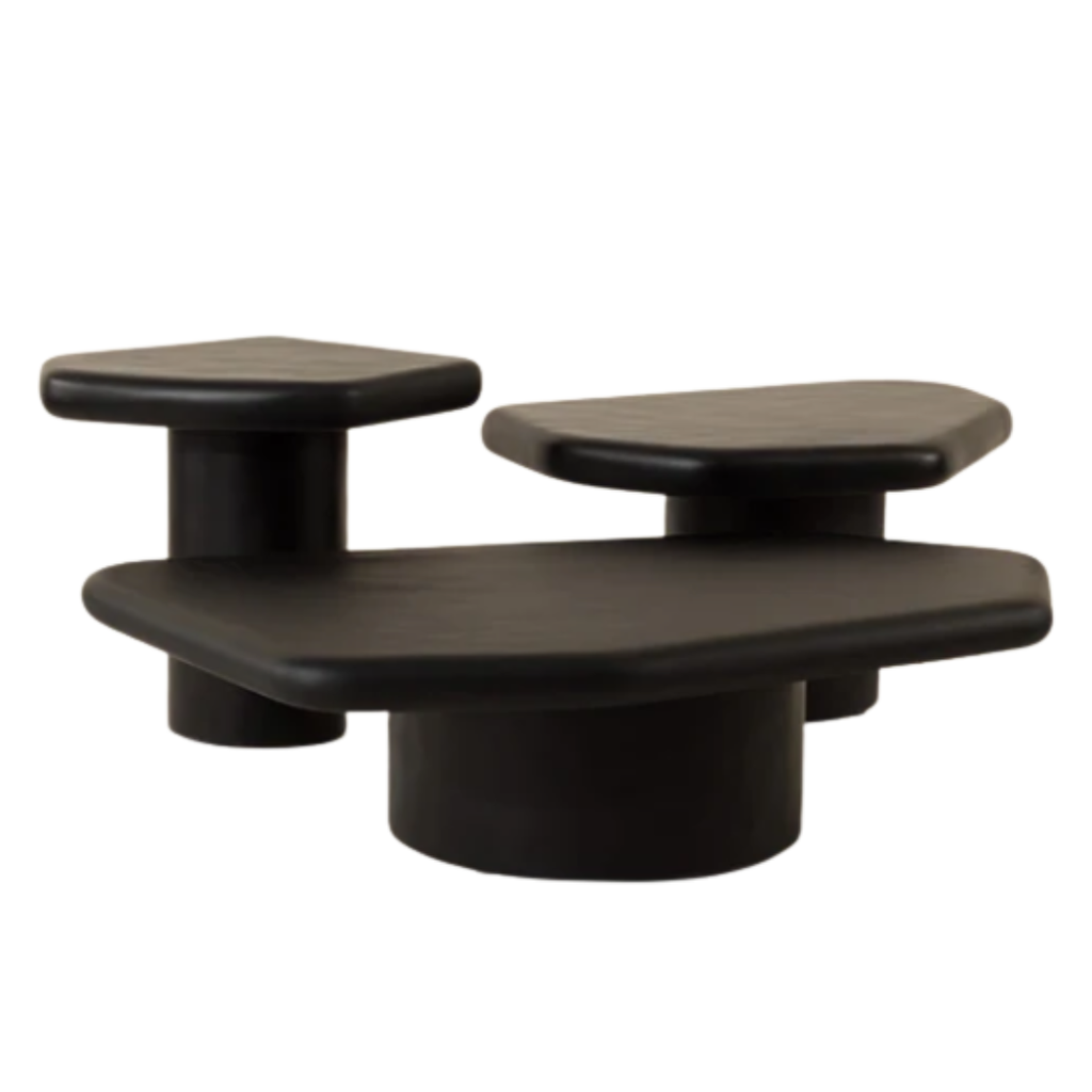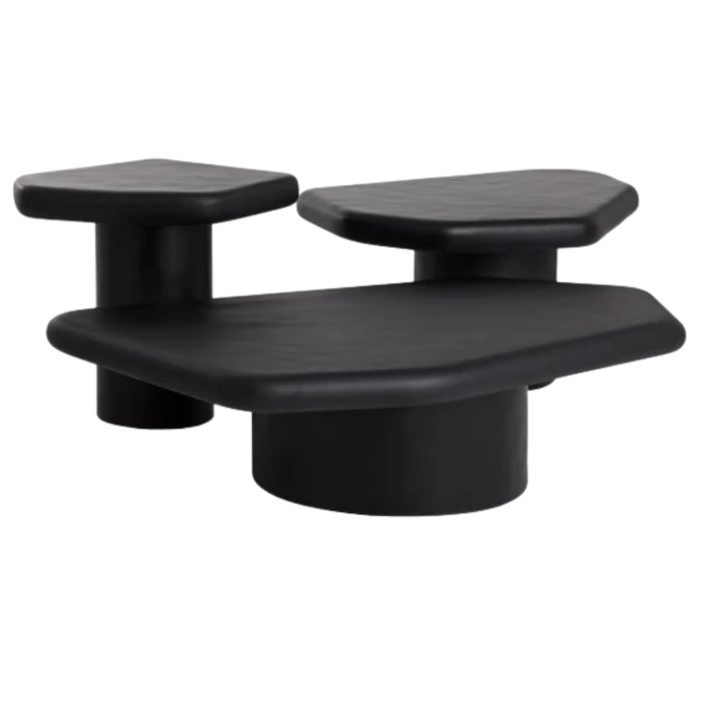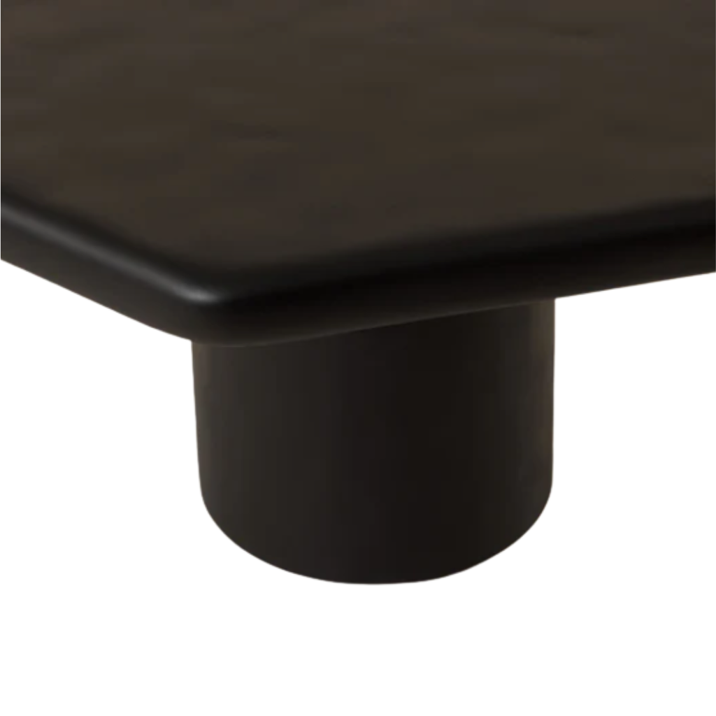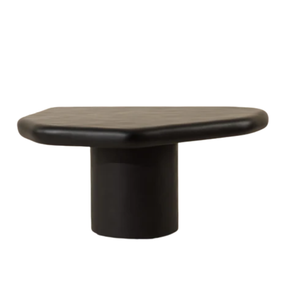Crafted from matte black concrete, the Detti Coffee Table stands out with its sculptural silhouette. The rounded cylinder base supports a softly contoured top, shaped with organic asymmetry that adds depth and character to any indoor or outdoor setting.