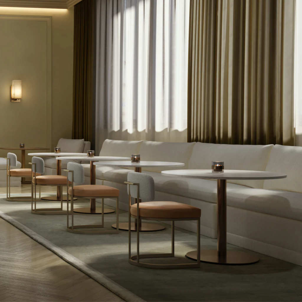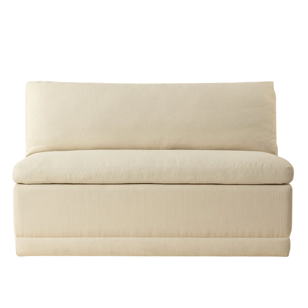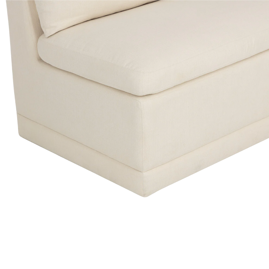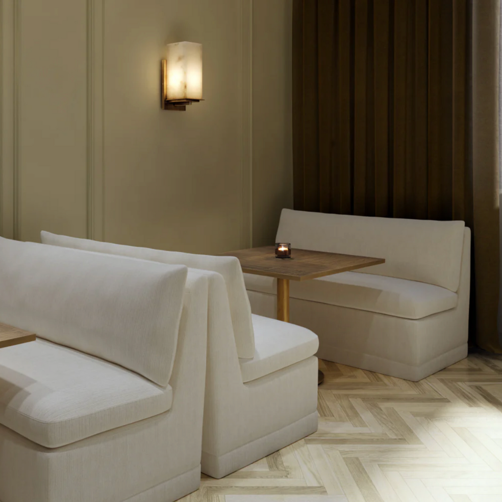 Elegant and inviting, the Donatella Banquette exudes cozy comfort. Fully upholstered in zenith alabaster performance fabric, it features a luxuriously plush seat and supportive back, making it a versatile choice for dining spaces, lounges, or built-in seating.