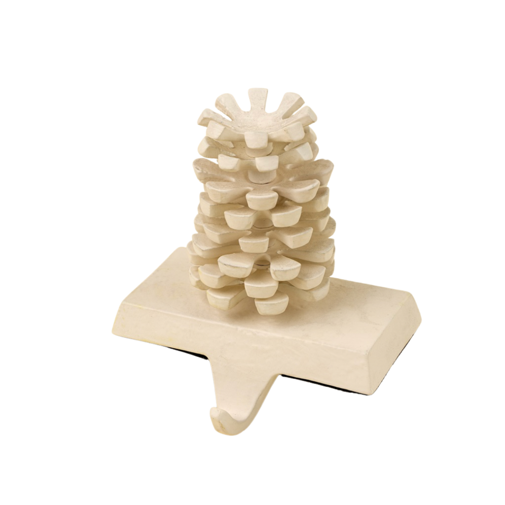 Give your mantel a stylish accent. Made from cast aluminum and iron, and finished in a winter-white powder coat, this nature-inspired stocking holder is up to the task of holding all Santa's goodies.